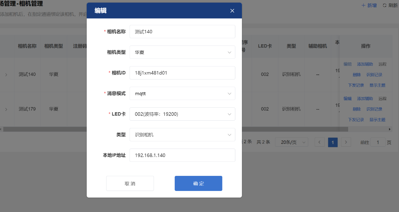 4、車道設置中添加相機,選擇華夏相機,相機ID在則通過第2步一卡通調試工具中查看。